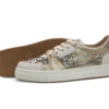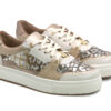 Tenis en cuero con acabado en folia oro. Posee plantilla tipo confort, y suela en caucho antideslizante. Diseño moderno y sofisticado, ideal para looks casuales y elegantes. Elaborados por manos Colombianas. |