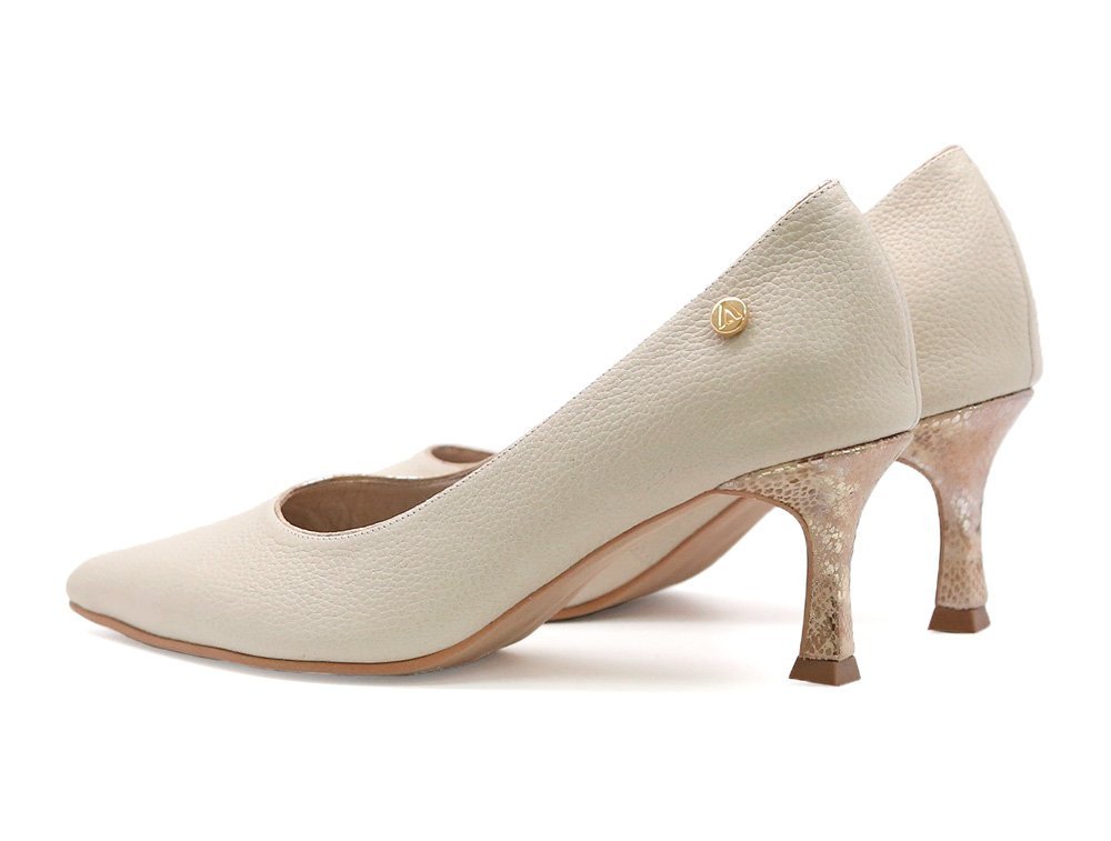 Zapatilla de tacon en cuero arena