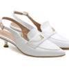 Zapatilla en cuero blanco, diseñadas para ofrecer elegancia y confort en cada paso. Plantilla acolchada, correa ajustable junto con un accesorio moderno y distintivo. Hecho por manos colombianas. |