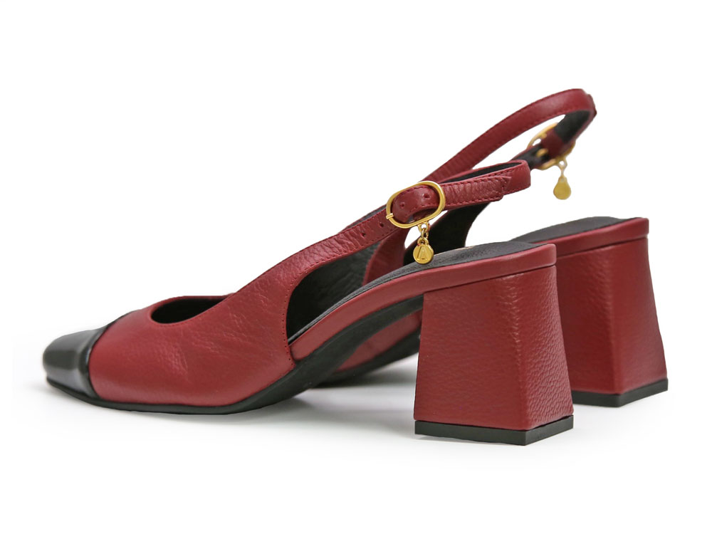 Zapatilla de tacon en cuero cereza