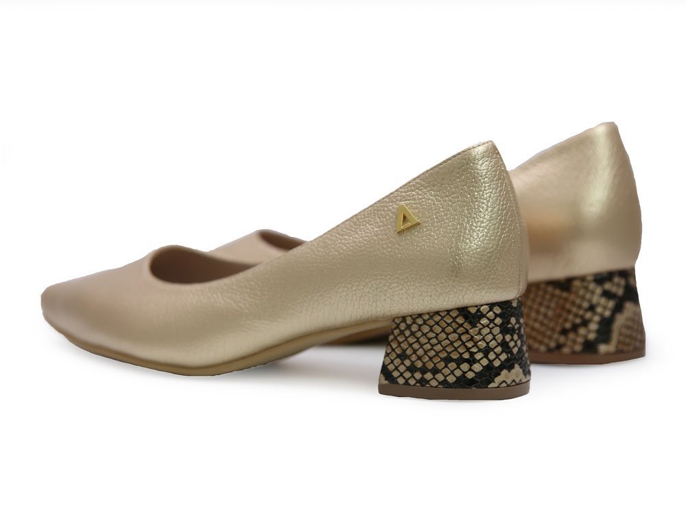 Zapatilla de tacon en cuero dorado
