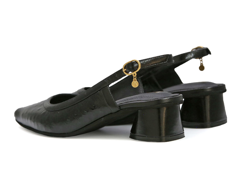 Zapatilla destalonada con acabado en folia lo que le aporta un aspecto sofisticado y moderno. Su punta fina que estiliza el pie, con un tacón ancho y ideal para mayor comodidad. Un calzado elegante y versátil. Hecho por manos colombianas. |