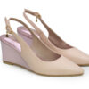 Zapatillas destalonada en cuero nude. Su diseño tipo plataforma con tacón corrido es ideal para quienes buscan altura sin sacrificar comodidad. |