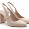 Zapatilla de tacón cuero con textura grabada, cuenta con correa elástica y herrajes de lujo, posee un tacón forrado de 7.5cm de alto.Perfectos para usar en la oficina o con outfits formales. |