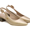 Zapatilla destalonada en cuero con punta fina que estiliza el pie, Posee correa ajustable y hebilla metálica garantizando un ajuste cómodo y seguro. Su tacón ancho con acabado en folia, aporta un detalle moderno sin perder la sofisticación. Hecho por manos colombianas. |