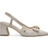 Zapatilla destalonada con acabado en folia. Posee correa elastica garantizando un ajuste cómodo y seguro. Posee detalle metálico decorativo en la parte frontal.