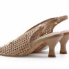 Zapatilla de tacón destalonada con textura perforada a laser en folia. Cuenta con correa elastica y un accesorio cromado en forma de corazon en su parte frontal. Elegantes y delicados, para hacerte lucir estilizada con tus outfits mas casuales y elegantes, realzando tu comodidad.