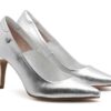 Tacón en cuero metalizado,forro interno y plantilla en cuero, posee tacón puntilla forrado de 7.5cm de alto.Perfecto para usar con outfits elegantes o de fiesta. |
