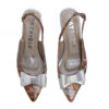 Tacón destalonado fabricado en cuero metalizado con textura grabada y diseño único en capellada,forro interno y plantilla en cuero, posee tacón geométrico recubierto en folia de 5.5cm de alto.Estos tacones son perfectos para combinar con tus outfits más sofisticados. |