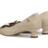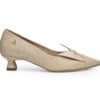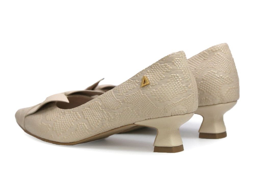 Zapatilla tipo salón elaborado en cuero con acabado texturizado que aporta un toque sofisticado y moderno. Su diseño estilizado con punta fina realza la silueta del pie, mientras que el detalle decorativo en la parte frontal le da un aire femenino y delicado. Tacón bajo con diseño geométrico que brinda estabilidad y comodidad, ideal para usar durante todo el día sin perder elegancia.