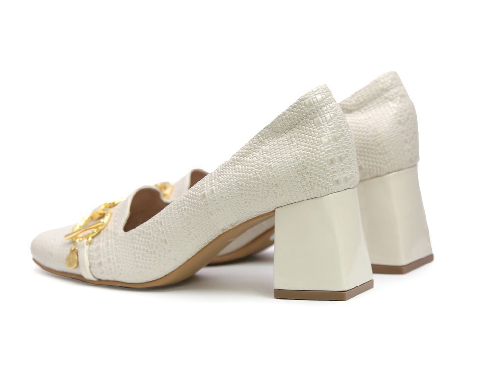 Zapatilla en cuero grabado que aporta un diseño único y elegante. El dorado de su accesorio da un toque atractivo y sofisticado. Plantilla acolchada, ideal para ofrecer mayor comodidad. 100% hecho a mano. |