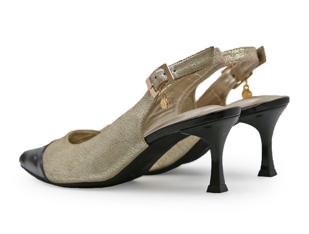 Zapatilla de tacón destalonada con diseño acharolado en su punta. Cuenta con correa ajustable y herraje cormado, con un tacón forrado de 5.5cm de alto. Elegantes y delicados, para hacerte lucir outfits sofisticados, haciendote sentir comoda y confiada. Hechos por manos colombianas. |