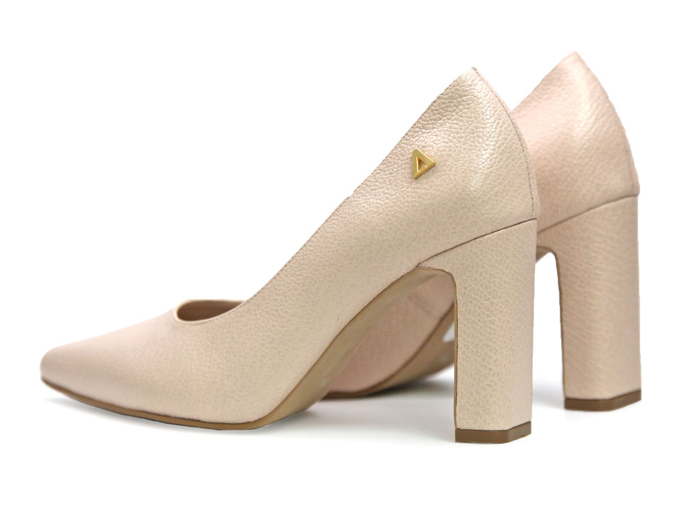 Zapatilla en cuero color nude. Su diseño clásico presenta una punta fina y un tacón grueso que aporta estabilidad y estilo. Forro interno y plantilla acolchada para mayor confort. Hecho por manos colombianas. |
