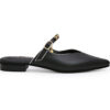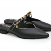 Zueco en cuero color negro, de diseño elegante y minimalista. Cuenta con punta fina y detalle de correa con herraje dorado decorativo que aporta un toque sofisticado. Su plantilla acolchada brinda comodidad, mientras que el tacón bajo cuadrado lo hace ideal para usar durante todo el día. Hecho por manos colombianas.. |