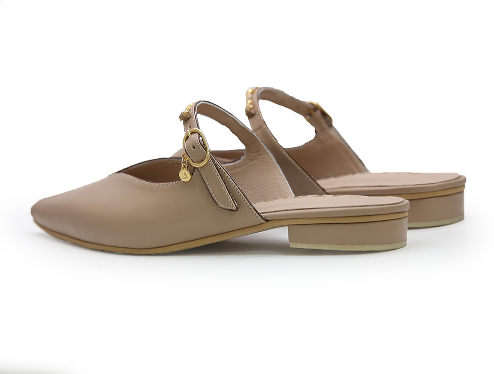 Zueco en cuero color nude, de diseño elegante y minimalista. Cuenta con punta fina y detalle de correa con herraje dorado decorativo que aporta un toque sofisticado. Su plantilla acolchada brinda comodidad, mientras que el tacón bajo cuadrado lo hace ideal para usar durante todo el día. Hecho por manos colombianas.. |